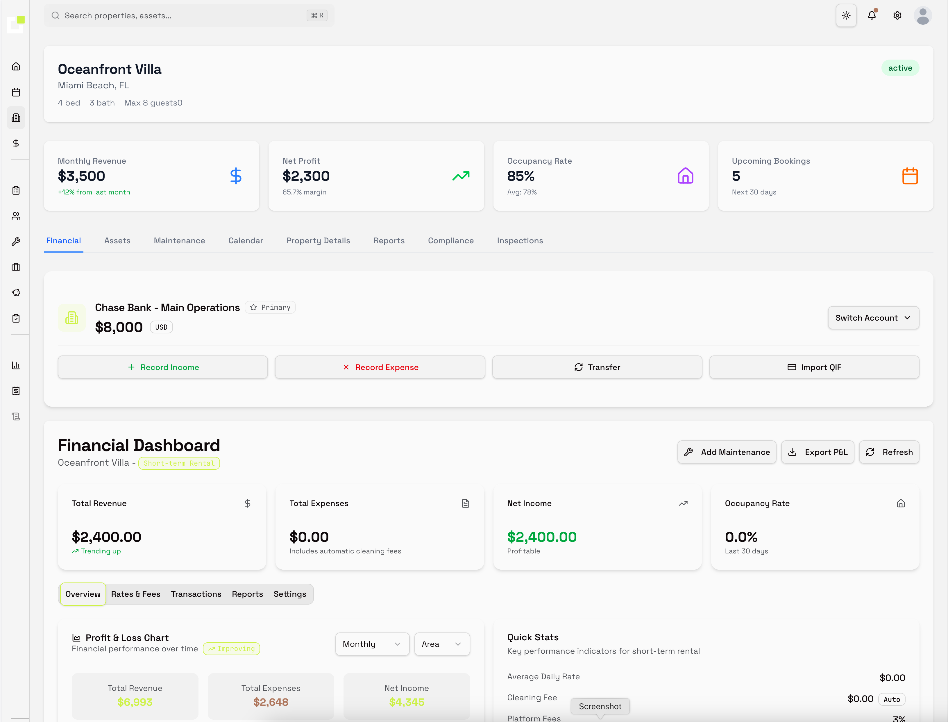 Start by connecting your channel managers and importing properties with their assets. Then configure your management agreements, expense categories, and custom reports. Finally, manage everything from one dashboard.